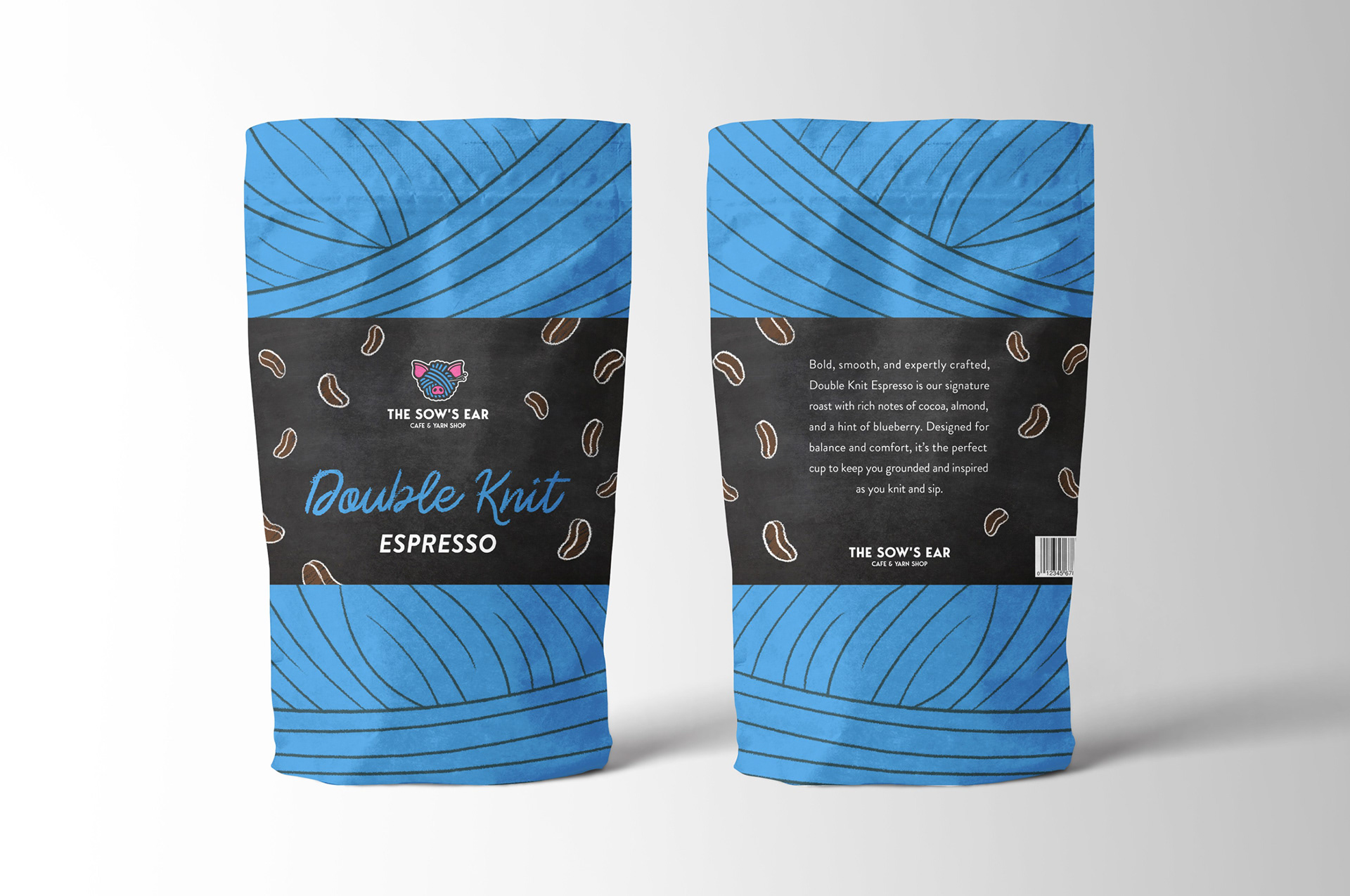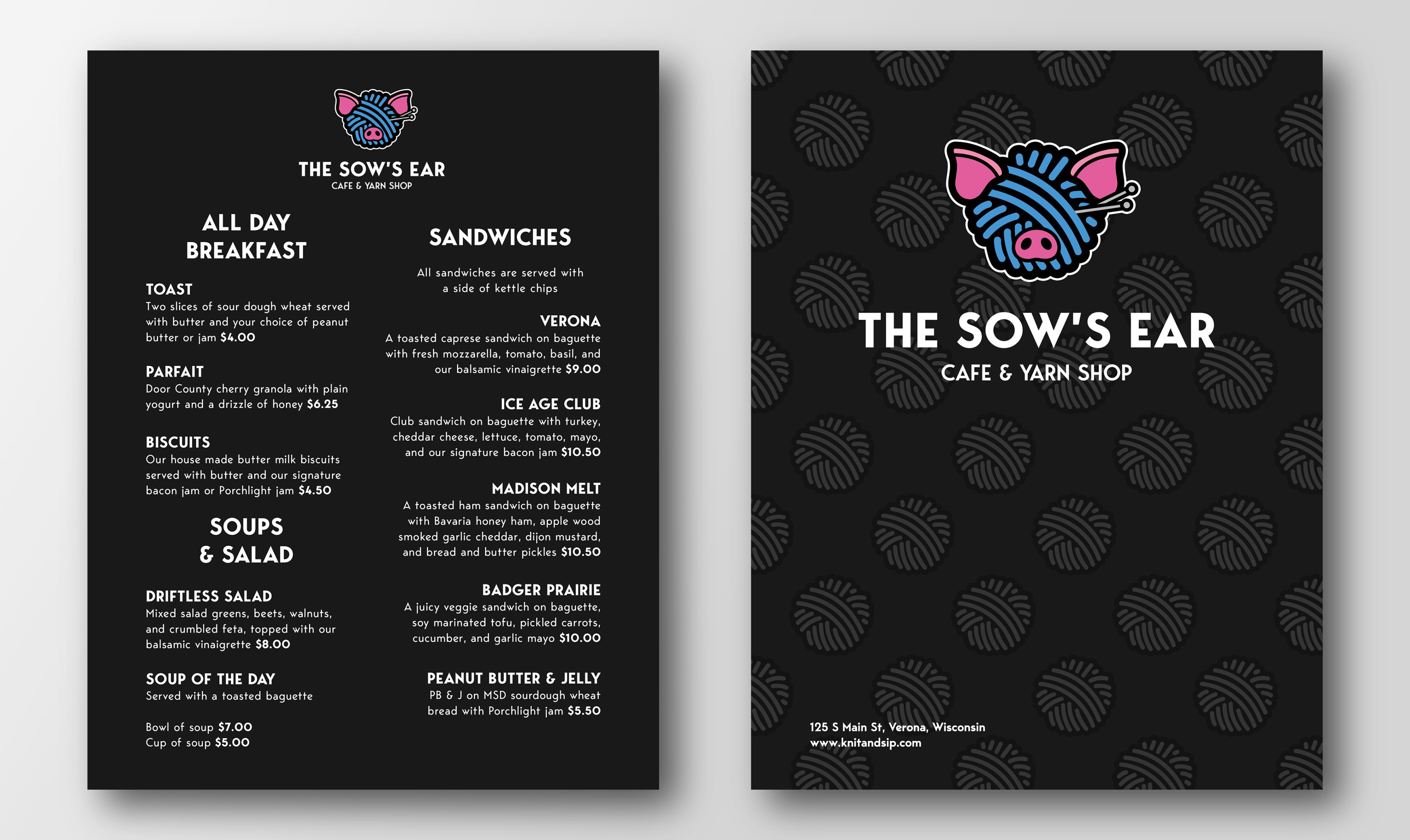 The Sow's Ear is a cafe and yarn shop located in Verona, WI, where coffee and creativity come together. For this brand redesign, I created a combination logo mark that merges a pig's nose and ears with a ball of yarn, reflecting both the cafe's playful name and its focus on yarn making.